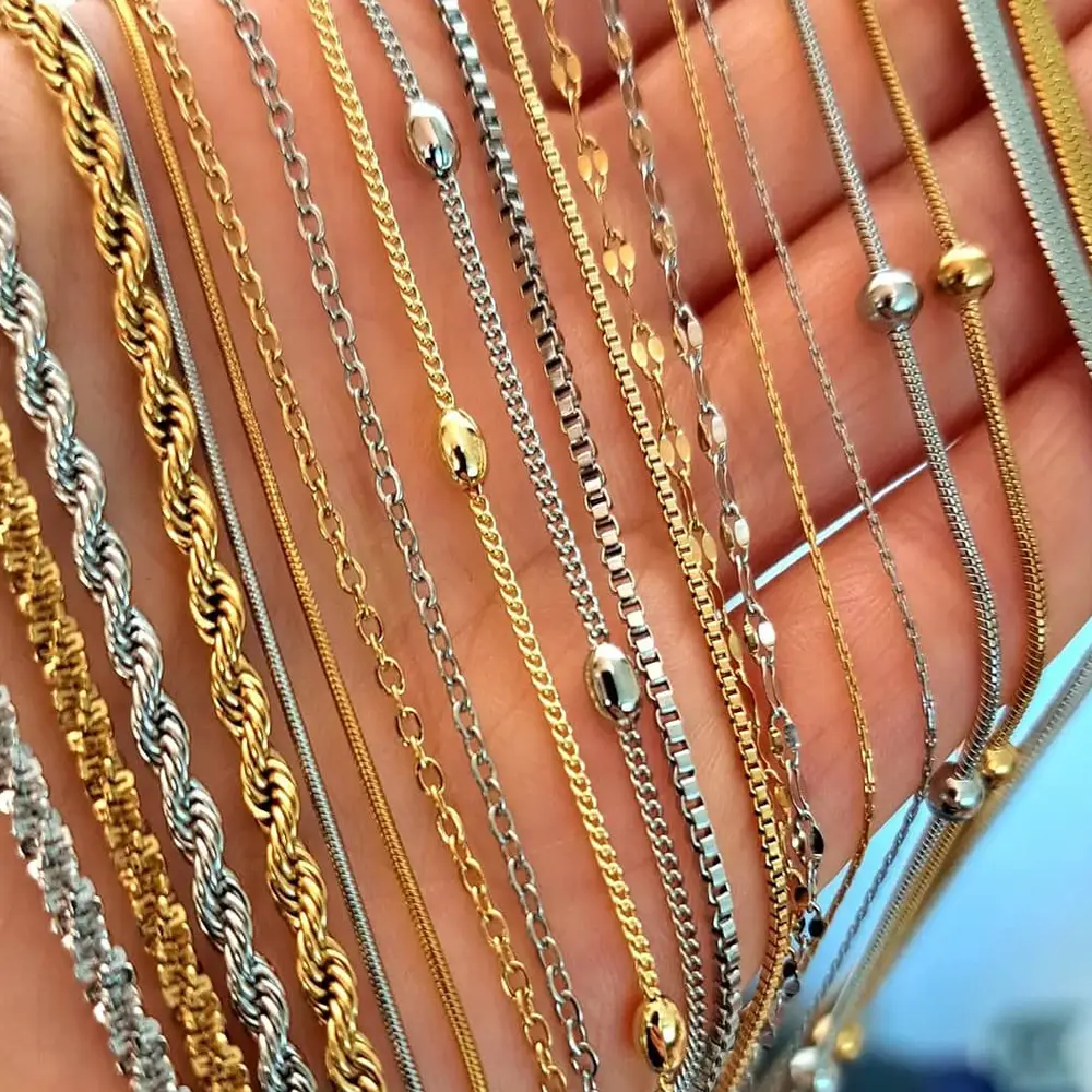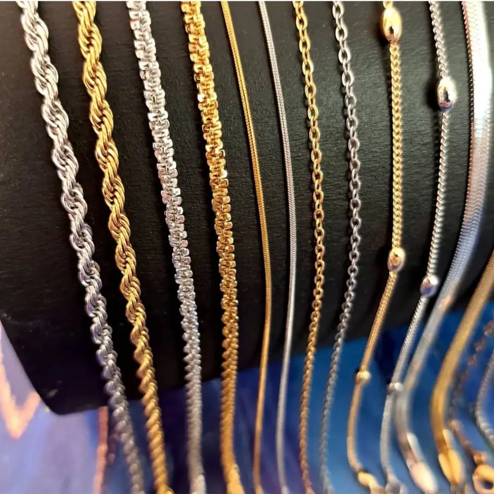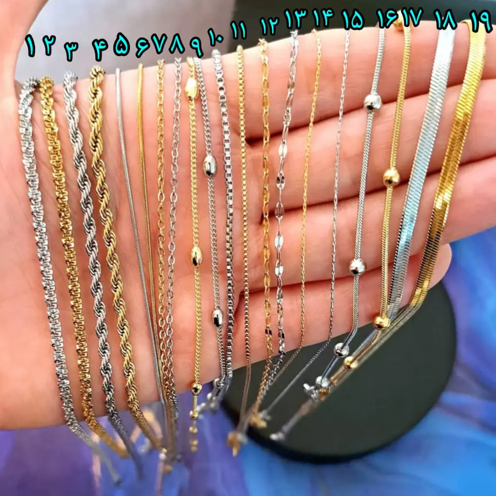 زنجیر ریز تا درشت پرمصرف ترینها برای تمام ایده هات تنوع عالی: ماری،ماری نازک. خاویاری،خلخال،دیپلمات.ونیزی ،طنابی و….