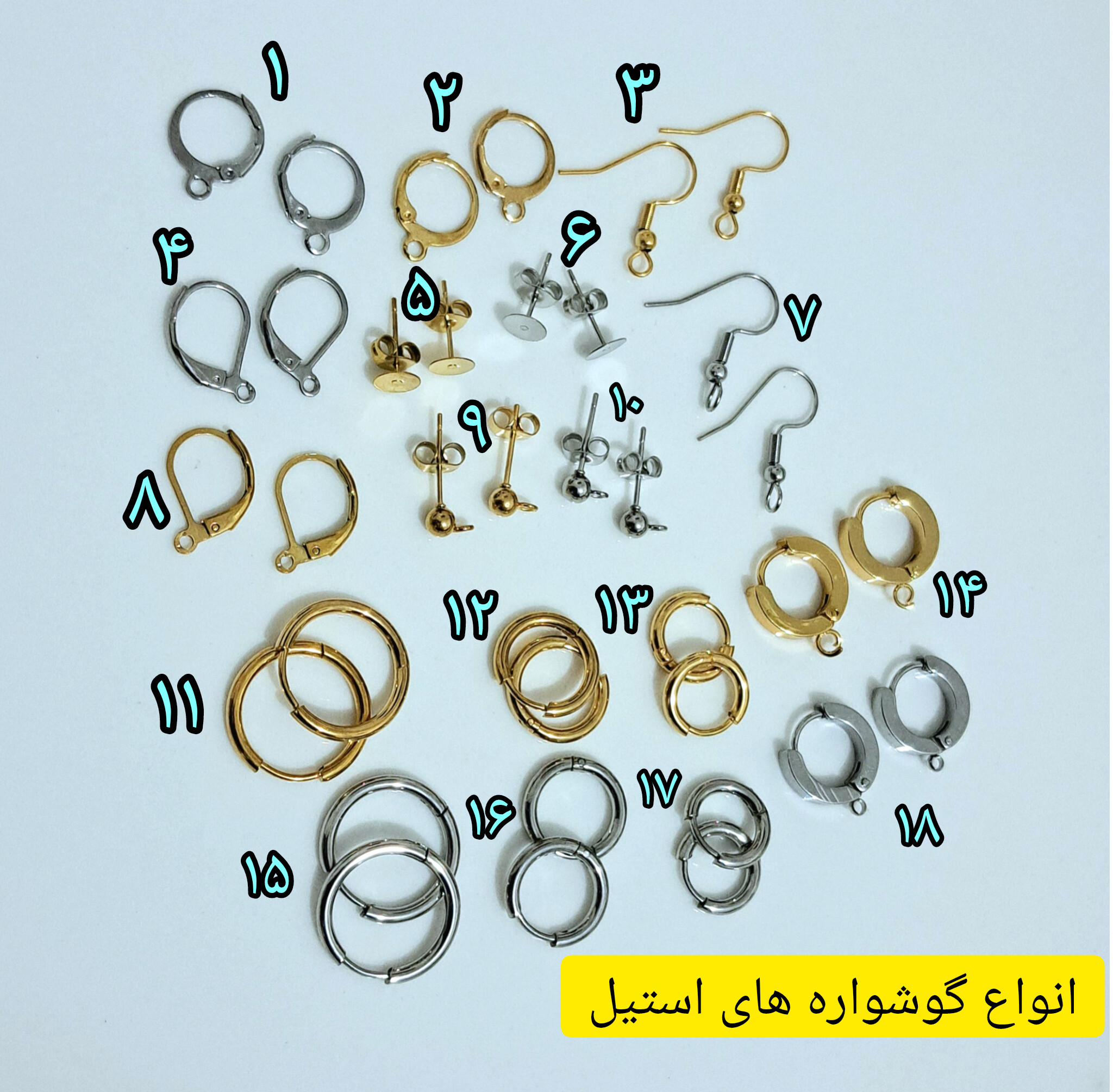 انواع پایه گوشواره های استیل جهت ساخت زیورالات زیبا و به روز.